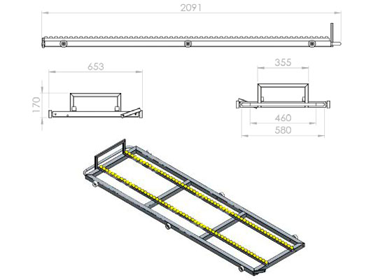 BARELLE PORTA SALME/CASSE Elevatori e barelle BARELLE PORTA SALME/CASSE BARELLE PORTA SALME/CASSE La struttura è realizzata interamente in Acciaio Inox Aisi 304 specchiato; DIMENSIONI Dimensioni esterne mm L 2091 P 653 H 170