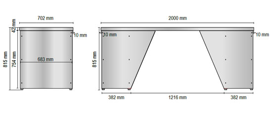 Dimensioni esterne mm L 2000 P 702 H al piano 815